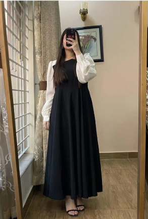Stylish Black Georgette Plain Frock - 1 Pc Women's Stitched Fashion